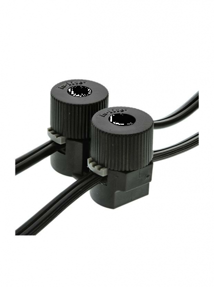 Een kabelverbinder mag maximaal worden belast met 50 VA. Als je na de aftakking 60 watt aan armaturen hebt aangesloten, gebruik je dus 2 kabelverbinders. Let erop dat de geribbelde en gladde zijden van de te verbinden kabels naar dezelfde kant wijzen.